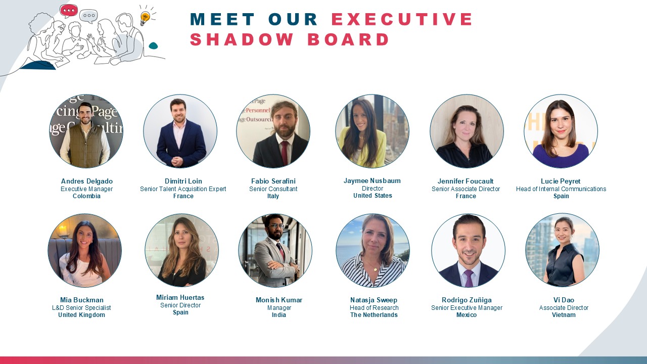 In 2021 we created our Executive Shadow Board. Their role is to scrutinise the Executive Board’s agenda, bringing the benefit of thoughts, opinions and contributions which truly reflect the diversity of our employees and our customers. The Shadow Board covers different regions, ethnicities, ages, gender, LGBTQ+ and tenure within PageGroup, and the members will rotate every 12 months.
